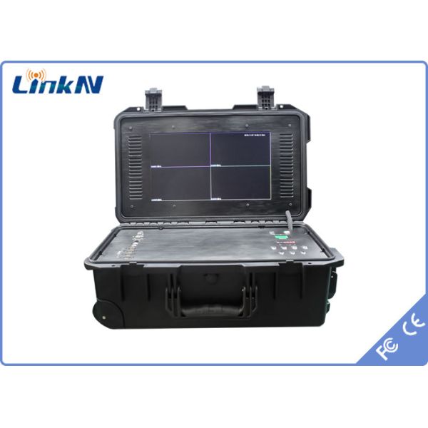 The LKAV-1404 briefcase receiver is a COFDM base station with 4-channel receiving function for team-based video surveillance operations. It decodes and displays 4 separate SD or HD digital video channels simultaneously, allowing its operator to observe activities in 4 different locations. Multiple transmitters operate in different frequency bands simultaneously. It can receive video and audio from 4 transmitters simultaneously and you can switch the video screen. It can be connected to external monitors and wireless modem, to achieve two-way voice intercom communication and integrated monitoring.
